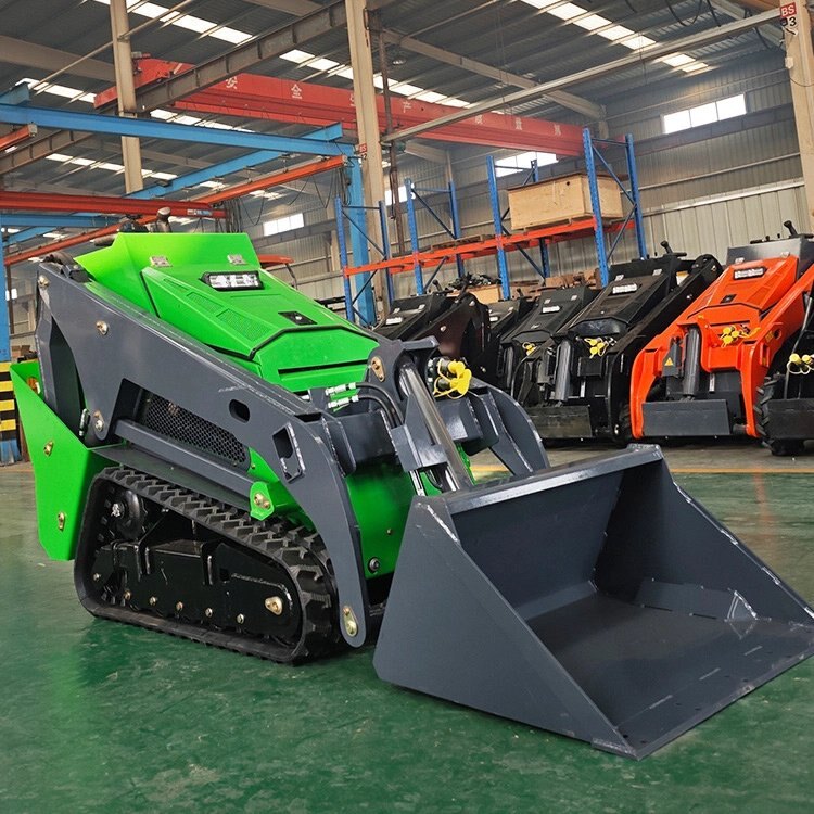 Derette V1000 Mini Skid Steer Loader with Standard 47" Bucket green 8" tracks, 35" wide machine No